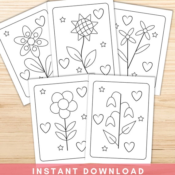 Simple Flower Coloring Pages For Kids Flower Coloring Pages Etsy